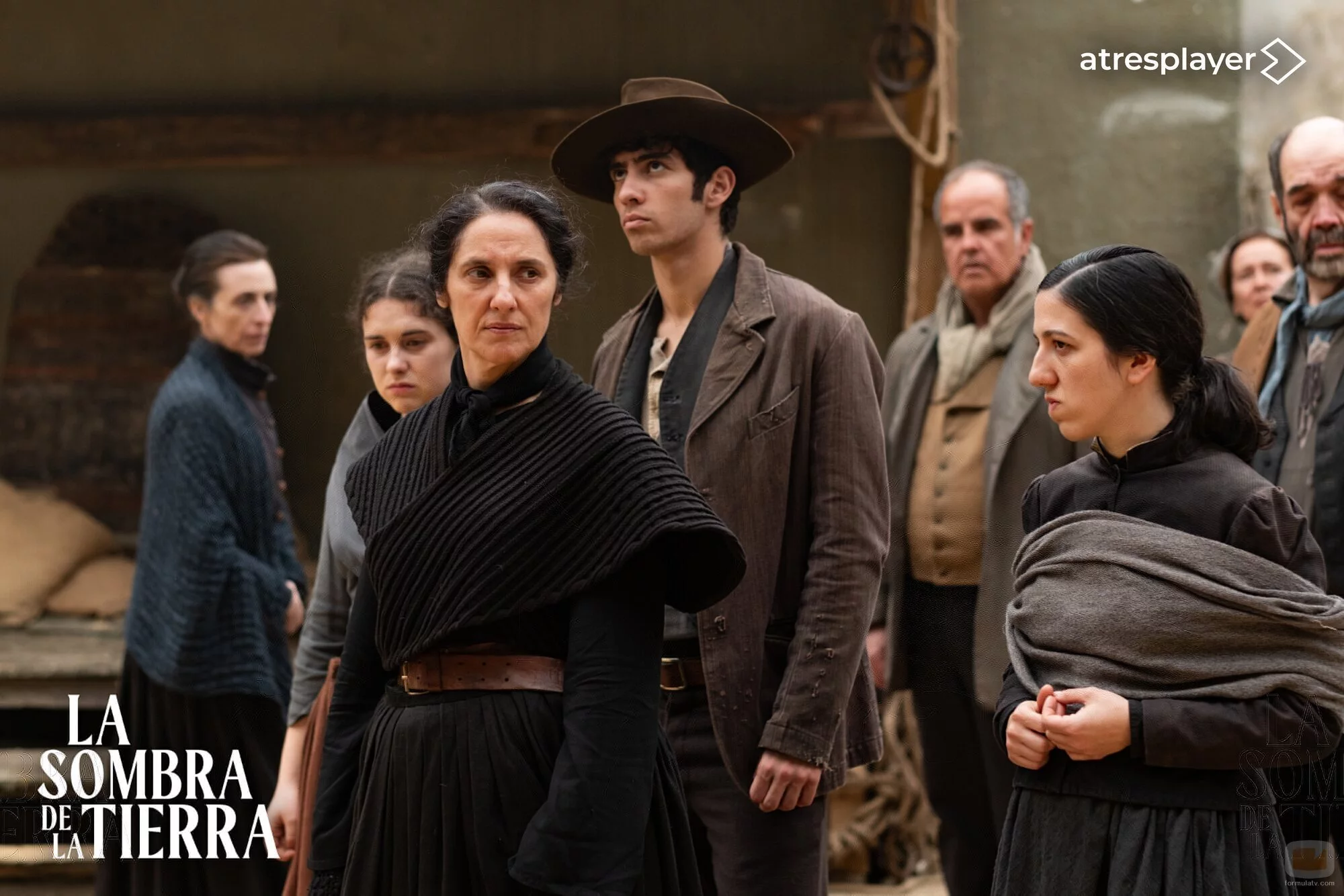 Los dos intérpretes aparecen en una de las escenas grupales de este drama rural basado en la novela de Elvira Mínguez.