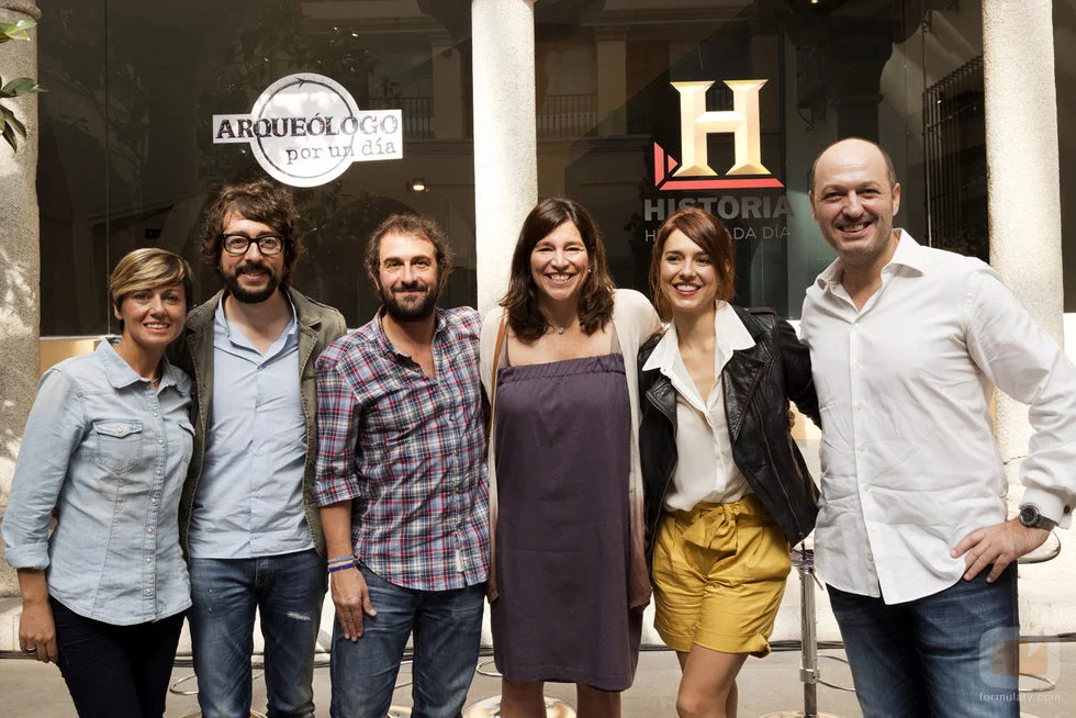 Los famosos de 'Arqueólogo por un día' junto al presentador Eloi Vila y la directora de Historia Carolina Godayol.