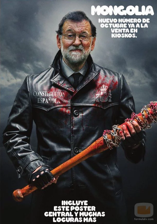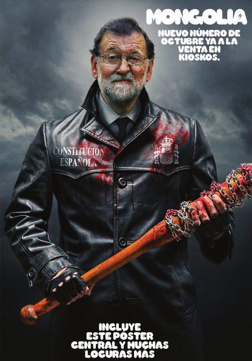 La revista Mongolia convierte al presidente del Gobierno en el malvado Negan de 'The Walking Dead' en un póster.