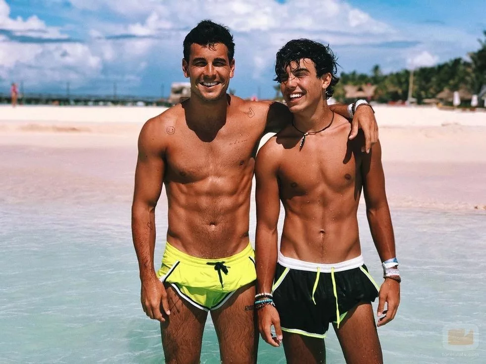 Los hermanos Casas lucen su musculado torso desnudo mientras disfrutan de sus vacaciones en una playa paradisiaca.