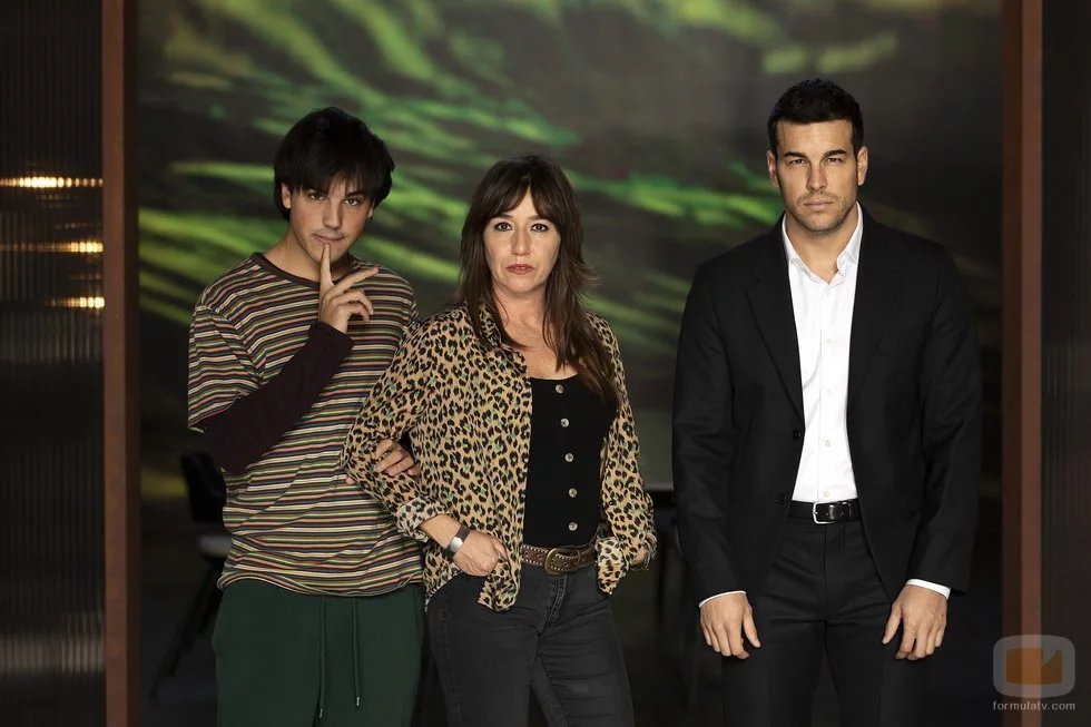 Los hermanos Casas junto a Lola Dueñas, que interpreta a la madre de los hermanos Mur en la serie producida por Bambú Producciones.