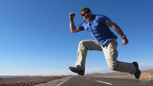 El presentador de 'Climas extremos' adopta una curiosa pose para la instantánea en el Desierto de Atacama.