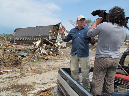 El meteorólogo graba una de las presentaciones en Joplin (Missouri) tras el paso de un tornado. Programa 3.
