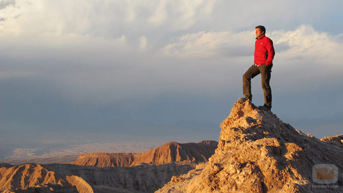 El presentador de la serie documental 'Climas extremos' observa el horizonte desde un peñasco