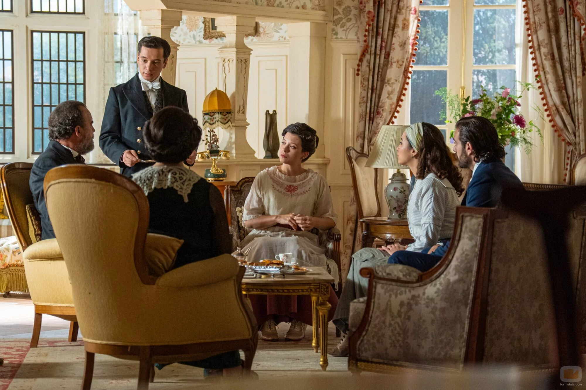 Isabel Serrano, Manu Imízcoz, Carmen Asecas, Ibrahim Al Shami J., Manuel Regueiro y Amparo Piñero aparecen en una foto promocional del episodio 4x180 de 'La Promesa'.