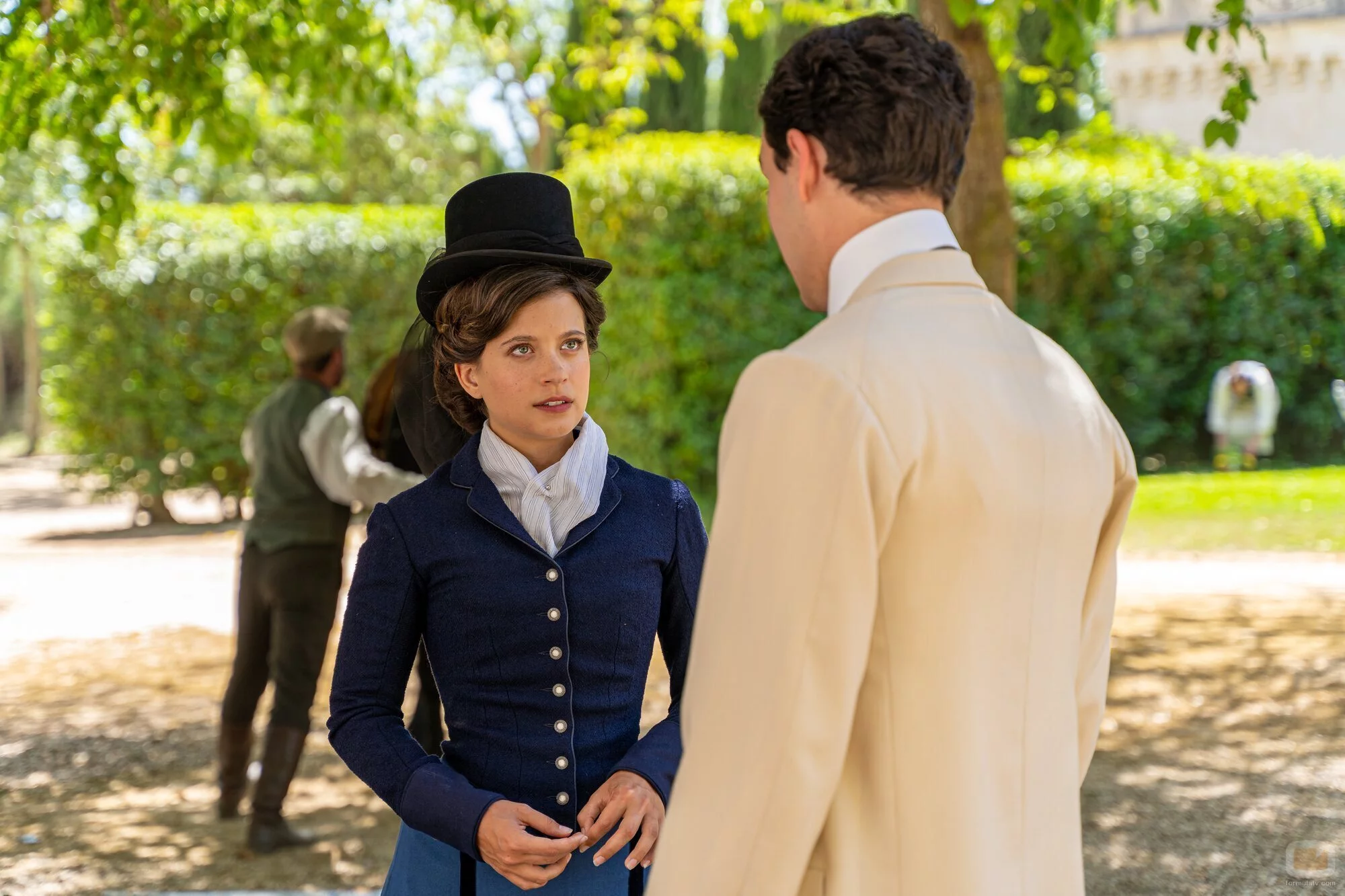 Martina va vestida con ropa de montar a caballo cuando se encuentra con Curro de la Mata en la serie 'La promesa'.