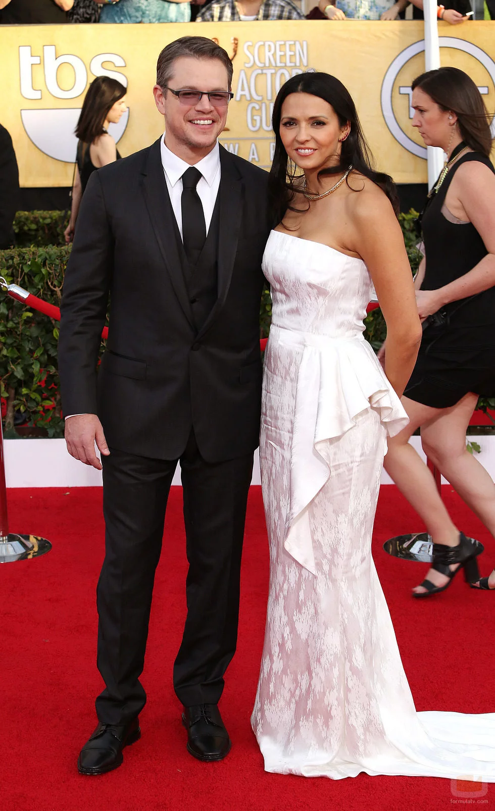 El actor de 'Behind the Candelabra', Matt Damon, junto a su esposa Luciana Barroso en la alfombra roja de los Screen Actors Guild Awards 2014.
