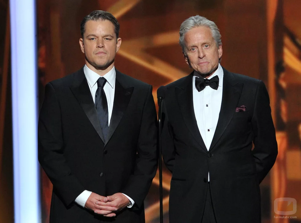 Los actores Matt Damon y Michael Douglas presentan el Emmy 2013 a la mejor actriz de miniserie o tv movie.