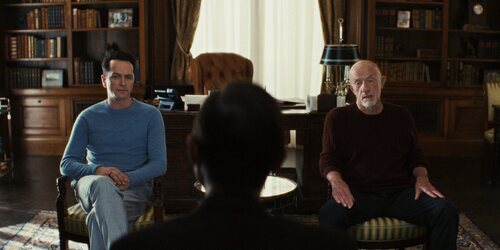 Matthew Rhys y Jonathan Banks aparecen en una escena del episodio 'Secreto a voces' de 'The Beast in Me', la serie de televisión de Netflix.