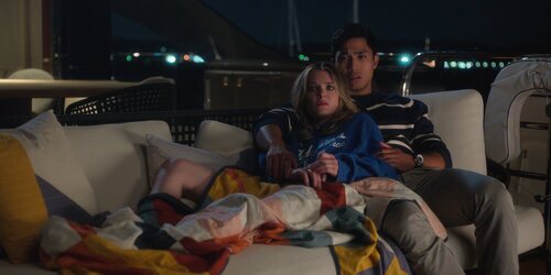 Meghann Fahy y Trevor Salter en 'Exilio' de 'Sirens'