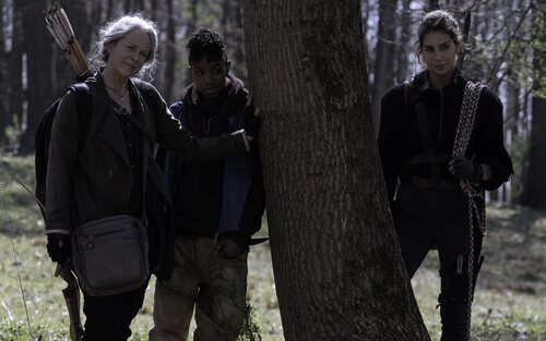 Melissa McBride, Angel Theory y Nadia Hilker como Carol, Kelly y Magna en la undécima y última temporada de 'The Walking Dead'.