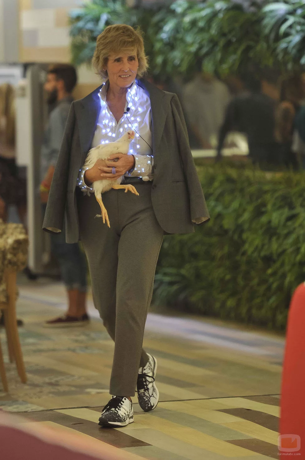 Mercedes Milá con una gallina en 'Gran Hermano 15'