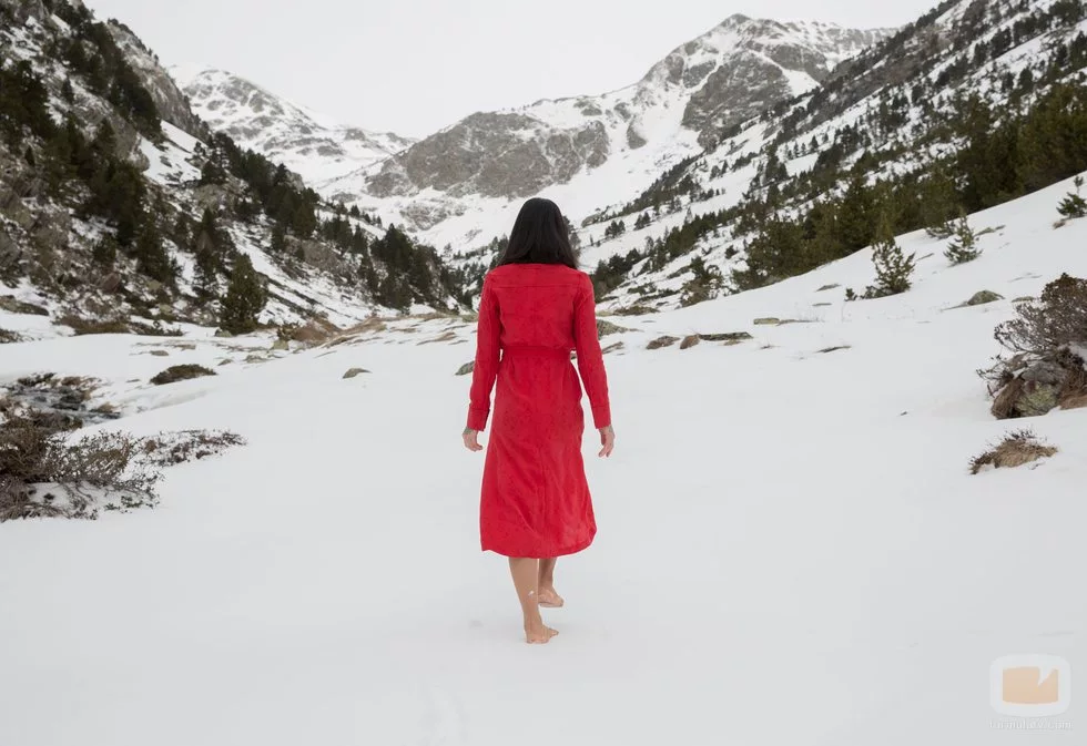 Mi Hoa Lee camina de espaldas por la nieve en 'Félix'