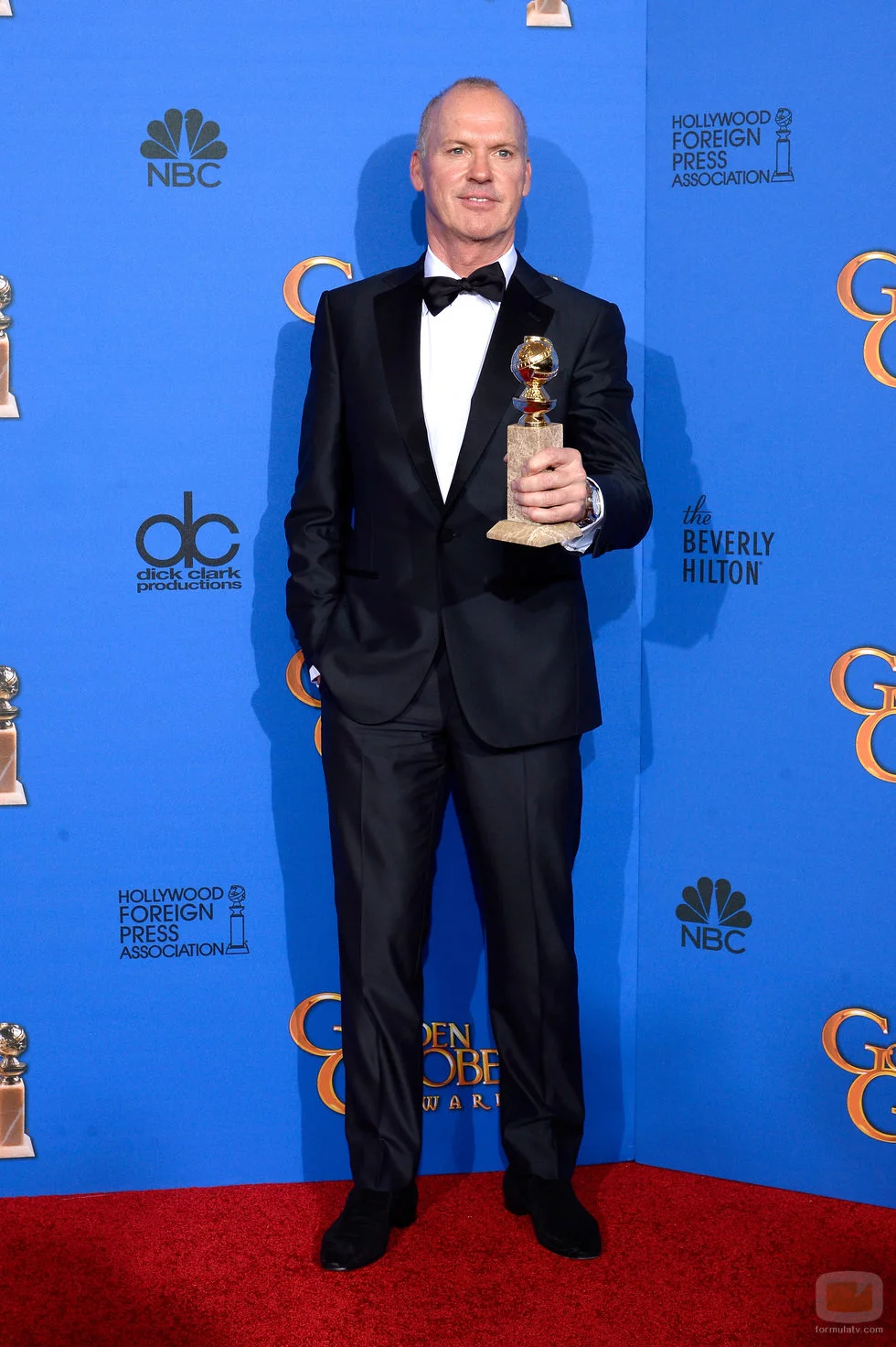 Keaton se alza con el premio como mejor actor de comedia o musical por su actuación en la película 'Birdman'.