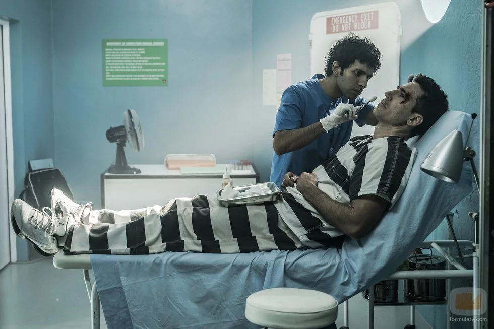 Miguel Ángel Silvestre recibiendo cuidado sanitario en 'En el corredor de la muerte'