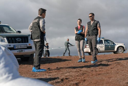 Katia Fellin y Miguel Ángel Silvestre aparecen en una foto del capítulo 'La confianza' de la serie 'Weiss & Morales'.