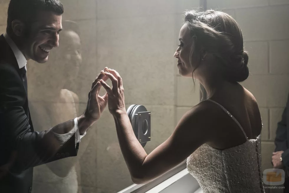Pablo Ibar (Miguel Ángel Silvestre) y Tanya (Marisé Álvarez) se casan en la cárcel durante una escena de 'En el corredor de la muerte'.