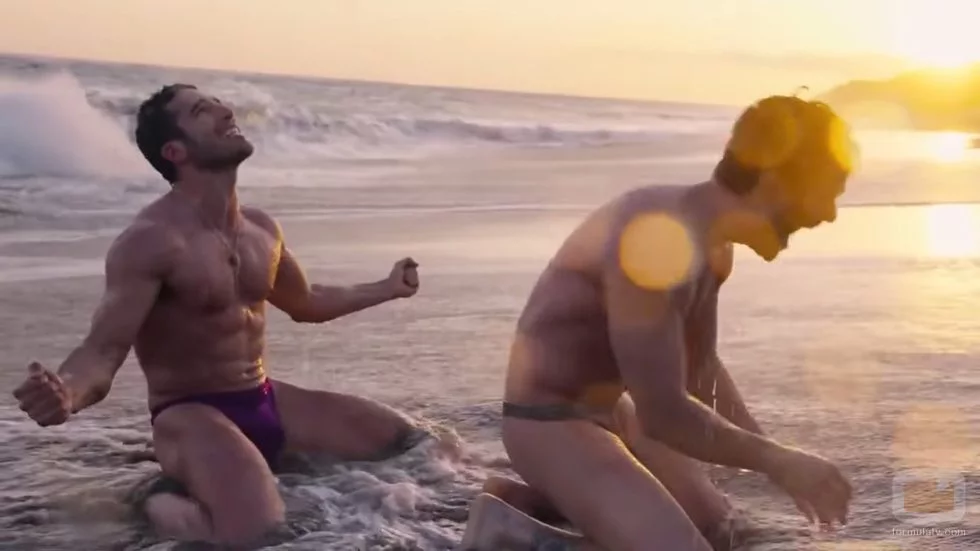 Miguel Ángel Silvestre y su Alfonso Herrera en tanga y en la playa durante una secuencia de 'Sense8'