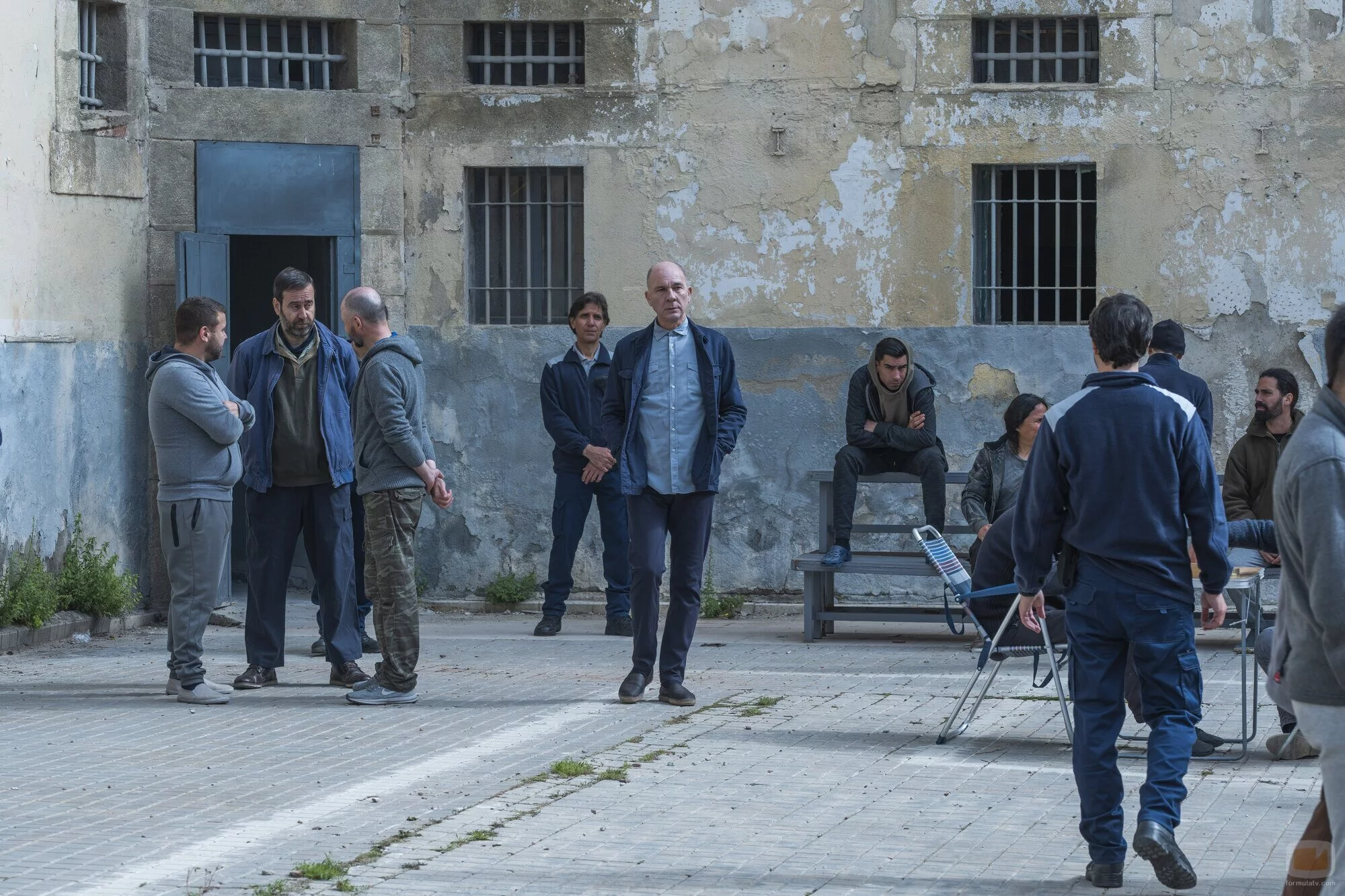 Darío Grandinetti pasea por el patio de la cárcel en la que está atrapado en la serie original de Atresplayer Premium.