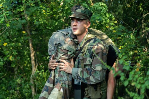 El intérprete Miles Heizer en una foto promocional del episodio 'La prueba de fuego' de la serie 'Reclutas', la serie de televisión de Netflix.