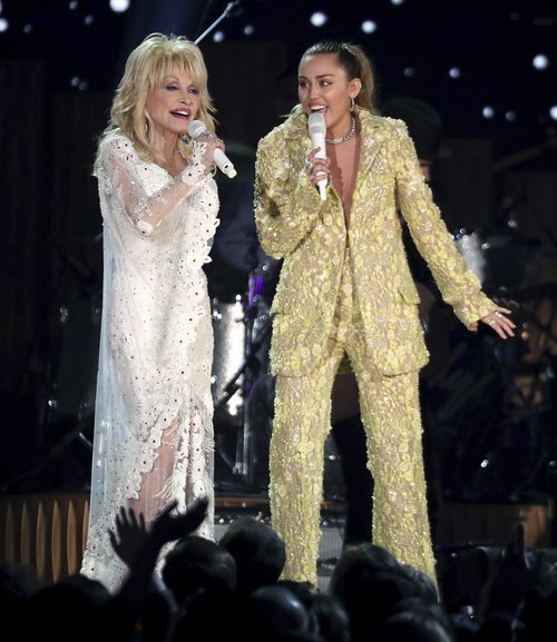 Miley Cyrus junto a Dolly Parton en los Premios Grammy 2019
