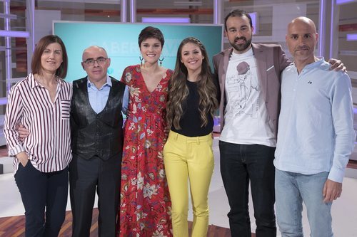 La presentadora Miriam Moreno junto a los colaboradores del programa y Alfonso García, director de 'Saber vivir' y Urbana Gil, directora de Cultura y Sociedad de TVE.