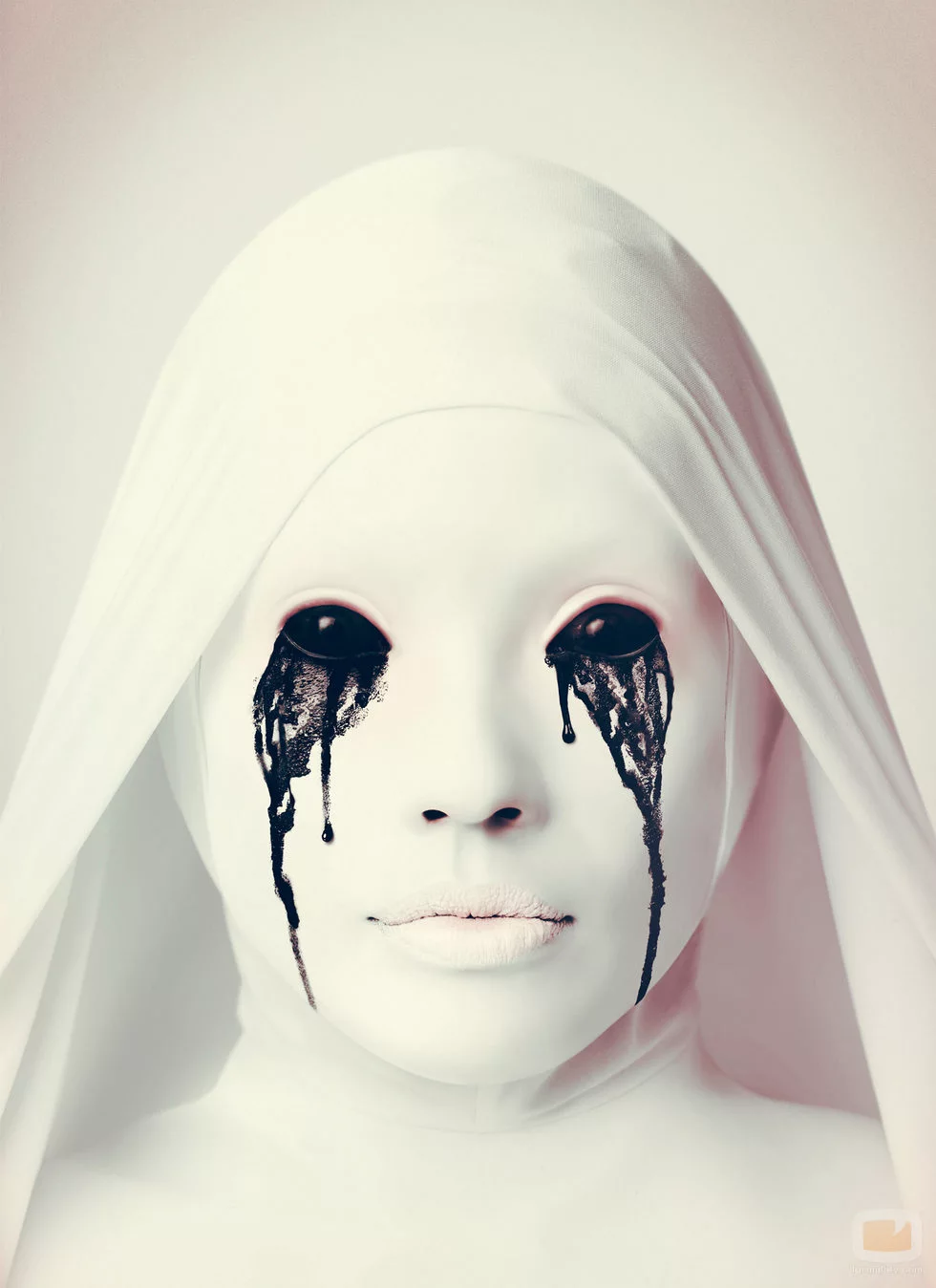 Una monja blanca llora lágrimas negras en el poster de 'American Horror Story: Aslym'