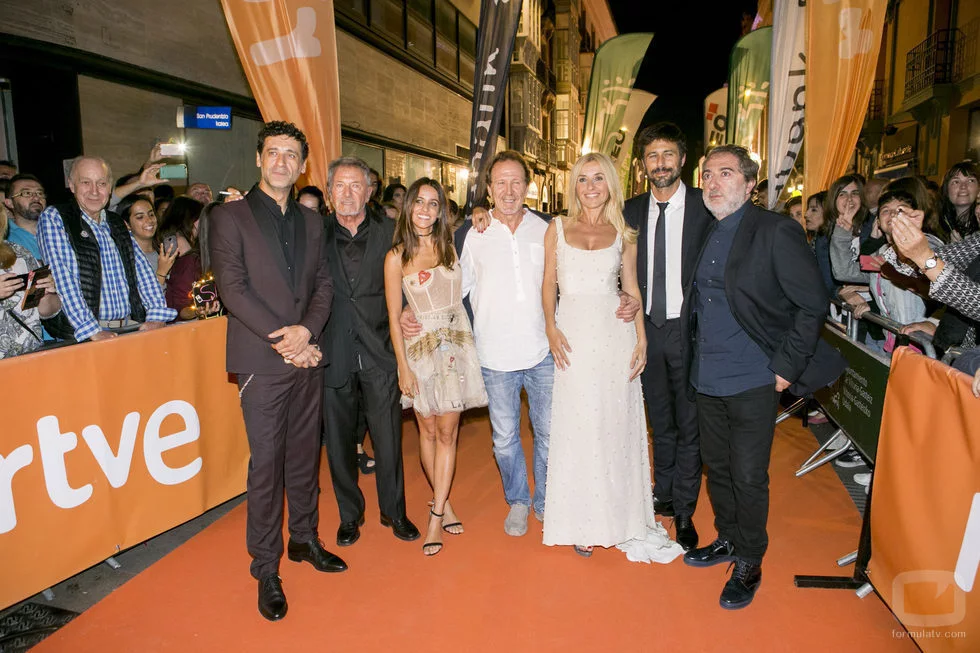 Nacho Fresneda, Jaime Blanch, Macarena García, Juan Gea, Cayetana Guillén y Hugo Silva han posado junto al creador de 'El Ministerio del Tiempo', Javier Olivares, en el FesTVal.
