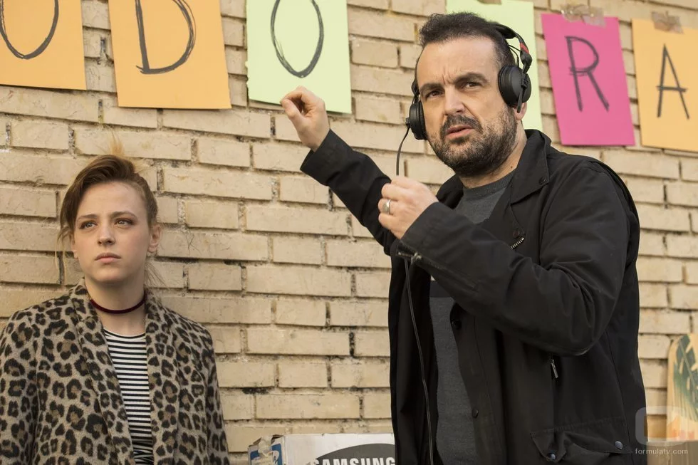 Nacho Vigalondo y Catalina Sopelana en el rodaje de 'El vecino'