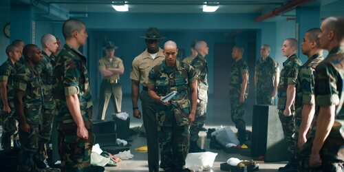 Cedrick Cooper, Kieron Moore, Liam Oh y Dominic Goodman aparecen en una imagen promocional del capítulo 'Nadar o hundirse' de 'Boots'.