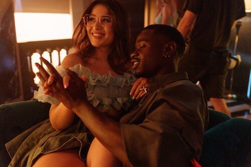 Imágenes de la octava temporada de 'Élite', la temporada final de la serie de Netflix, en las que Rocío (Nadia Al-Saidi) está sentada en el regazo de Dalmar (Ivan Méndes).