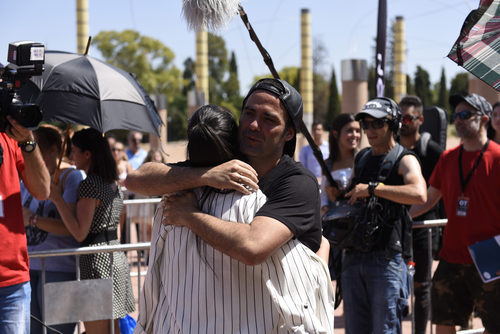 Naím Tomas ('OT 1') se abraza con una aspirante en el casting de 'Operación Triunfo' en Barcelona