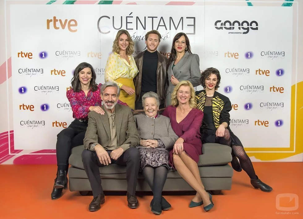 Natalia Millán posa junto a Ana Duato, Imanol Arias, María Galiana, Irene Visedo, Pablo Rivero, Carmen Climent y Paloma Bloyd en una imagen promocional de la temporada 20 de 'Cuéntame'.