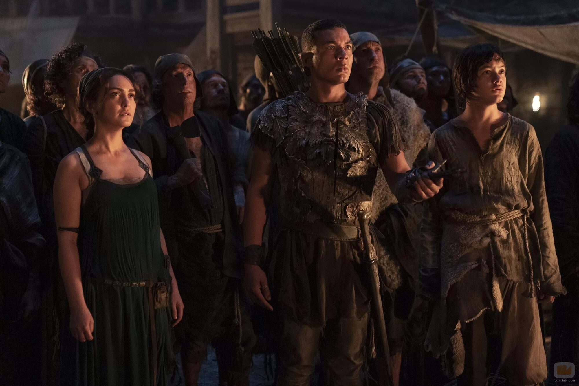 Los actores interpretan a la curandera Bronwyn, el elfo silvano Arondir y el hijo de la primera, Theo, habitantes de Tirharad.