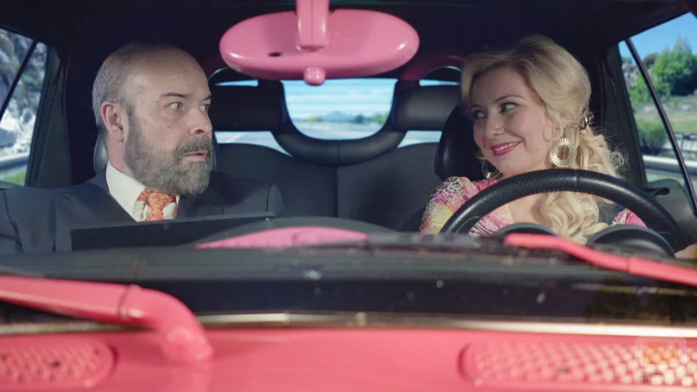 Nazaret Jiménez como Gloria y Antonio Resines como Paco, en el coche en la serie de Telecinco 'Aquí Paz y después Gloria'