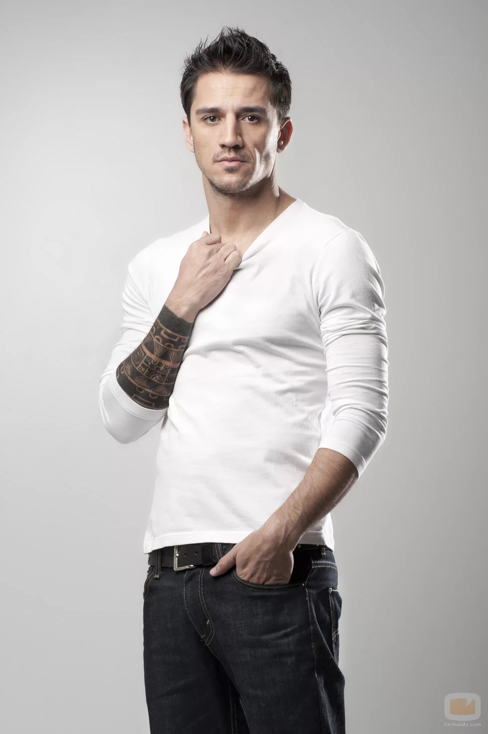 El cómico y exfutbolista posa con una mano en el bolsillo y la otra en el cuello de la camisa.