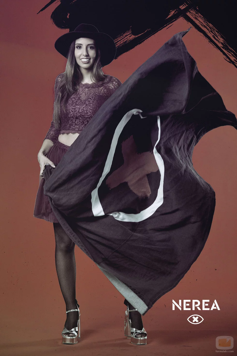 Nerea Montaraz, concursante de 'GH Revolution', viste con un sombrero y sujeta sonriente la bandera del programa.