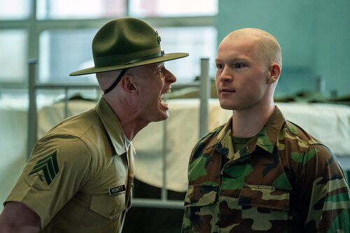 El intérprete Nicholas Logan en una foto promocional del episodio 'The Pink Marine' de 'Reclutas', la serie de televisión de Netflix.