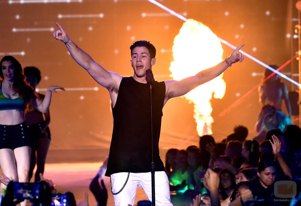 El cantante Nick Jonas durante su actuación en el escenario de los Nickelodeon's 28th Annual Kids' Choice Awards.