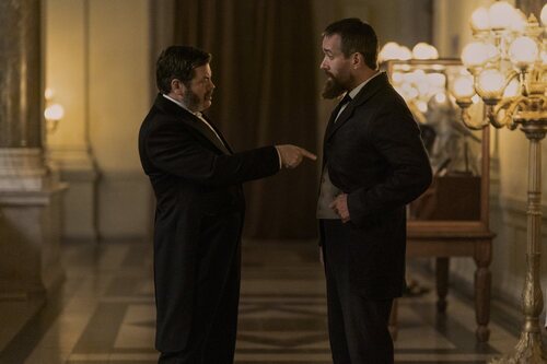 Nick Offerman y Matthew Macfadyen en 1x03 'Motivo de guerra' de 'Muerte por un rayo'