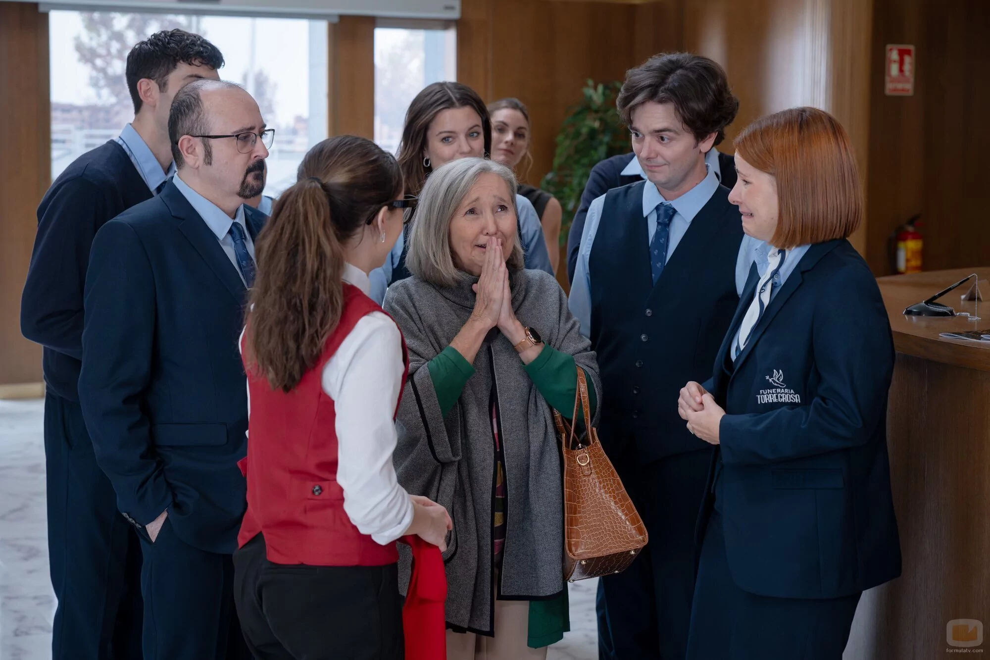 El personaje de Ascen López, entre gran parte de los empleados de la Funeraria Torregrossa en la tercera temporada.