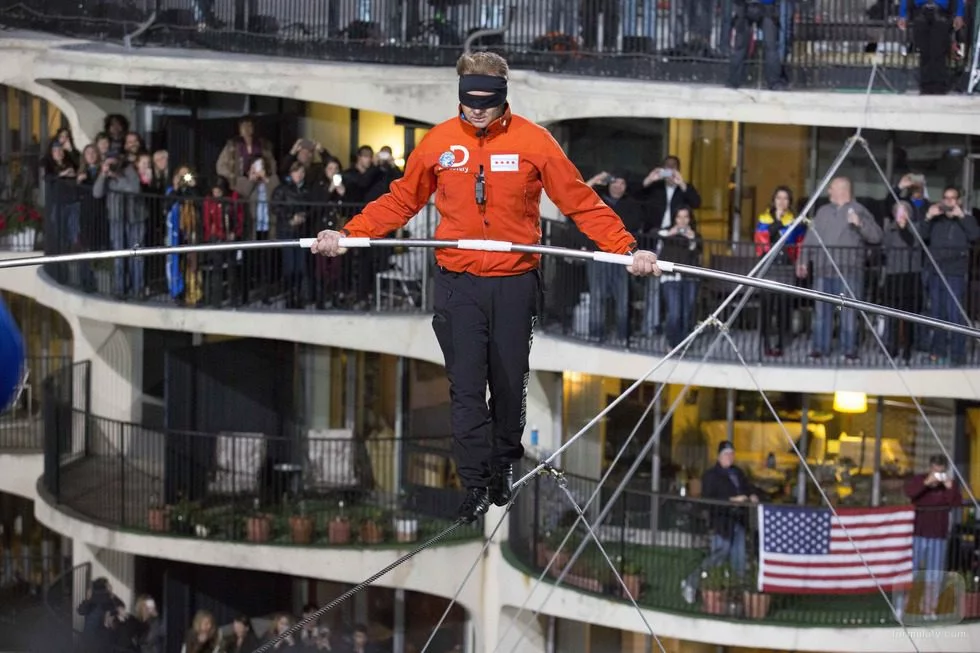 Nik Wallenda comienza su reto desde la torre oeste del Marina City