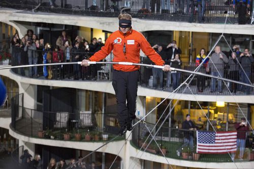 Nik Wallenda comienza su reto desde la torre oeste del Marina City
