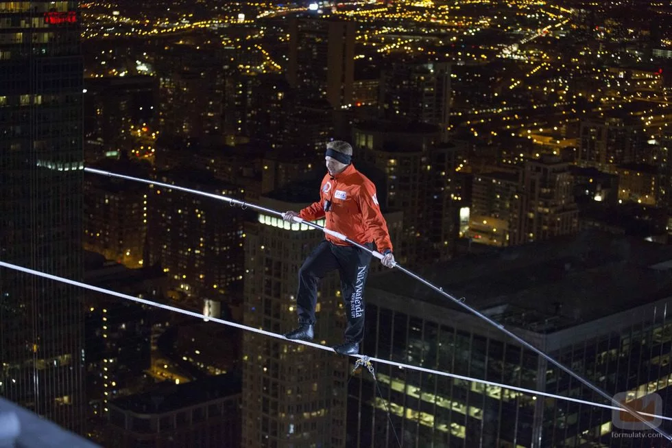 El estadounidense se atrevió a cruzar sobre una alambre de noche el cielo de Chicago.