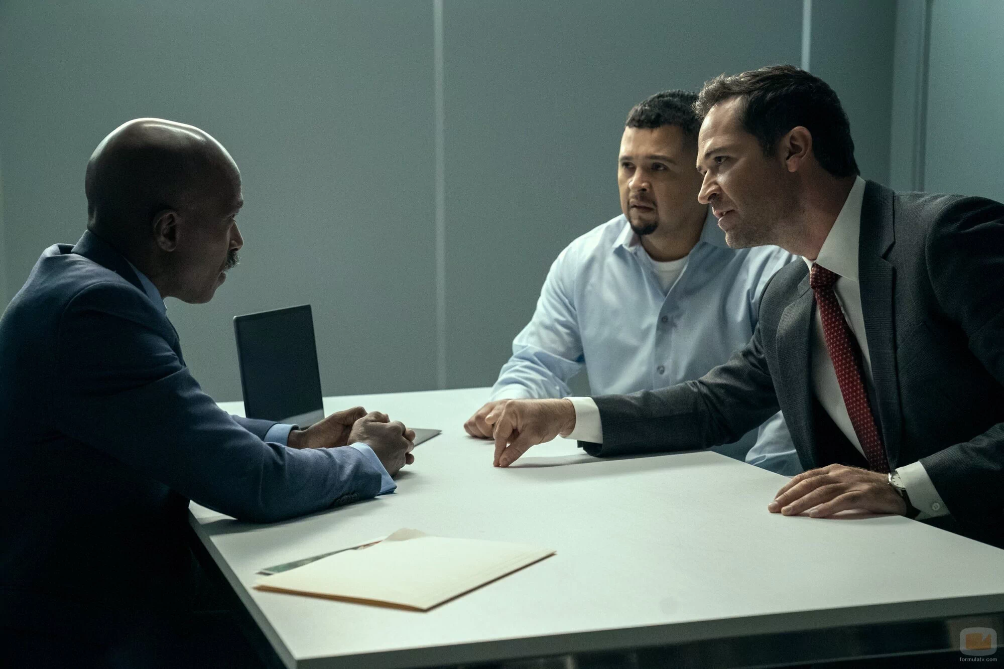 Manuel Garcia-Rulfo y Ntare Mwine aparecen en una escena del episodio 'Las normas de conducta profesional' de la serie 'El abogado del Lincoln'.
