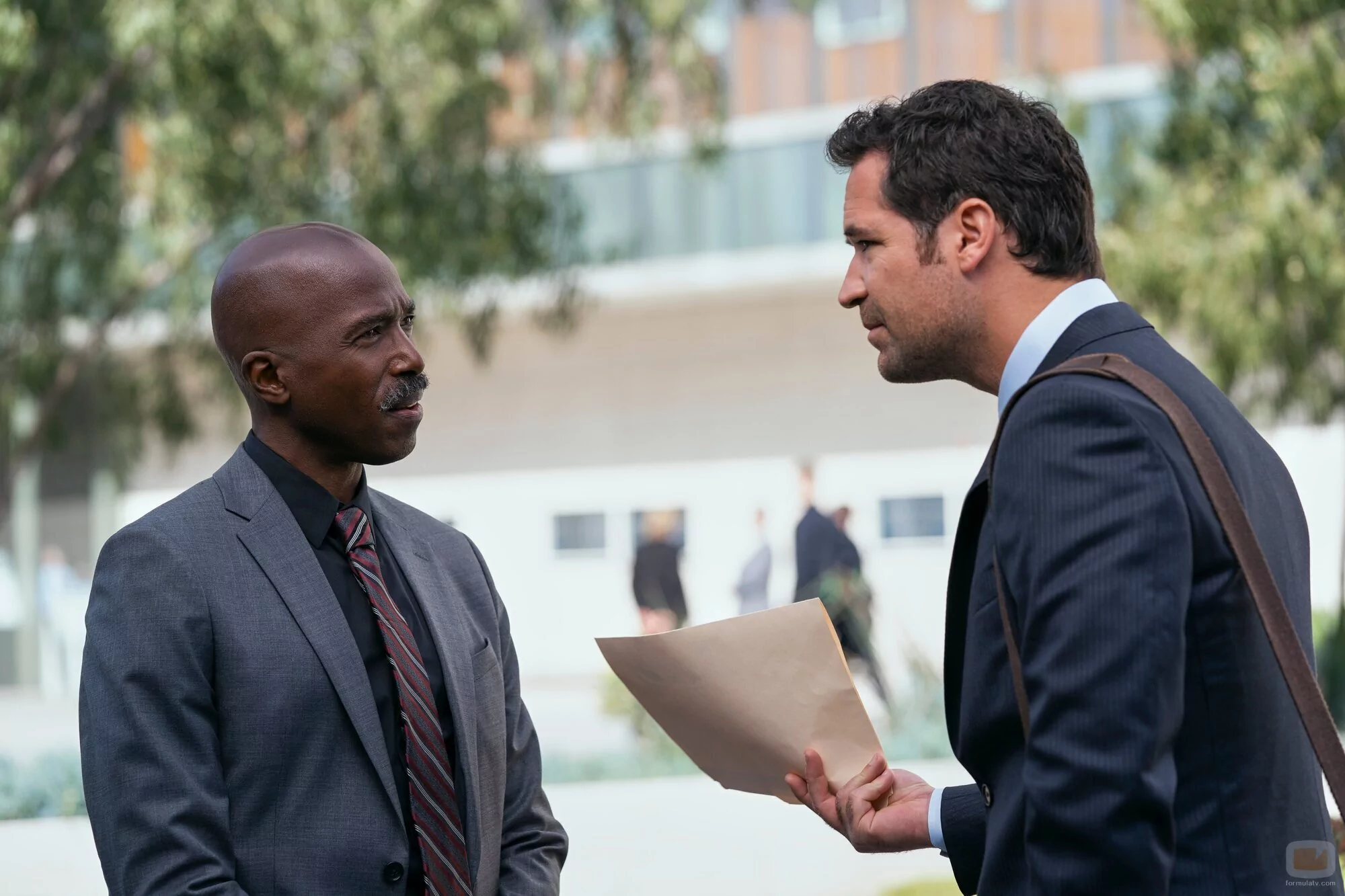Manuel Garcia-Rulfo y Ntare Mwine aparecen en una foto promocional del episodio 1x03 de 'El abogado del Lincoln'.