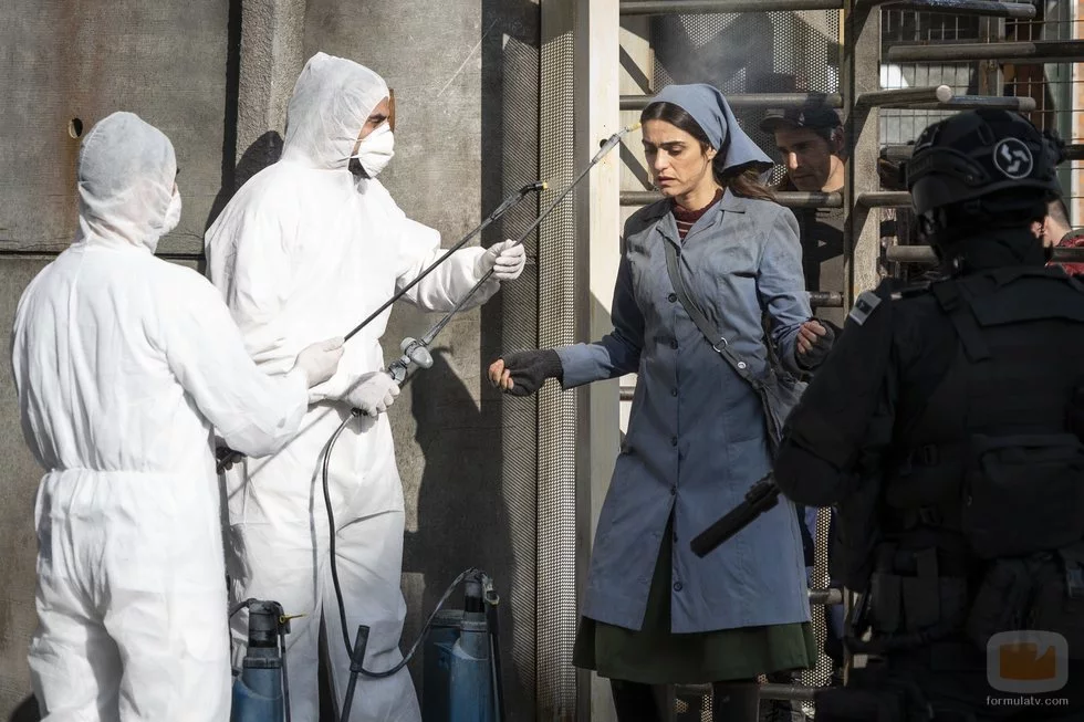 La reconocida intérprete Olivia Molina interpreta el papel de Julia. En esta escena la vemos antes de cruzar la valla de la ficción de Atresmedia.