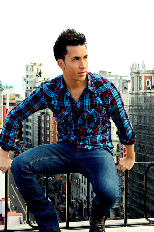 El reportero de 'Sálvame' posa en la azotea de un edificio de la Gran Vía de Madrid.
