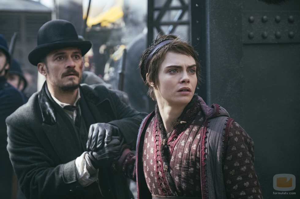 Orlando Bloom y Cara Delevingne en 'Carnival Row'