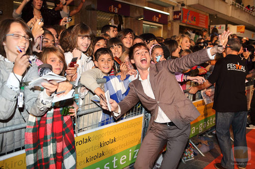 Óscar Sinela, Quino, se hace fotos con los fans a su llegada a la première de la cuarta temporada de 'Física o Química' en Vitoria